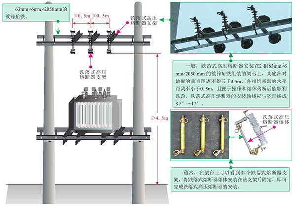 跌落式高壓熔斷器主要由絕緣支架、熔斷器熔體等構(gòu)成,安裝在配電變壓器高壓側(cè)或輸送給分支的線路上,具有短路保護(hù)、過(guò)載及隔離電路的功能。