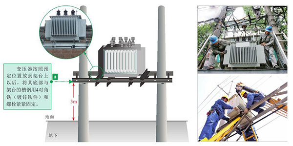 配電變壓器需要安裝在電桿的架臺(tái)上,安裝時(shí),通常需要借助起重機(jī)將其吊起,安放在架臺(tái)上,并進(jìn)行固定。