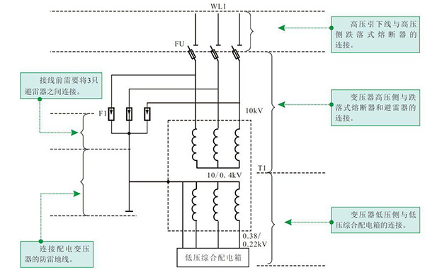 配電變壓器與相關(guān)設(shè)備接線示意圖