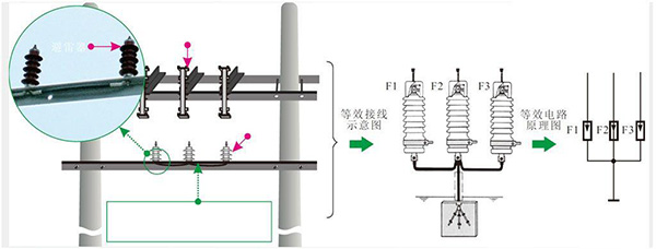 配電變壓器與相關(guān)設(shè)備接線之前,需要先將避雷器兩兩之間連接,再與接地裝置引線相連接,避雷器之間的連接線通常為橫截面積不小于25mm2的多股銅芯塑料線