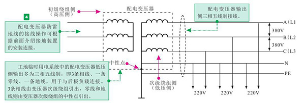 配電變壓器、跌落式高壓熔斷器、避雷器、接地裝置等構(gòu)成了工地臨時(shí)用電系統(tǒng)的電源部分,安裝時(shí)需要配合安裝和連接。