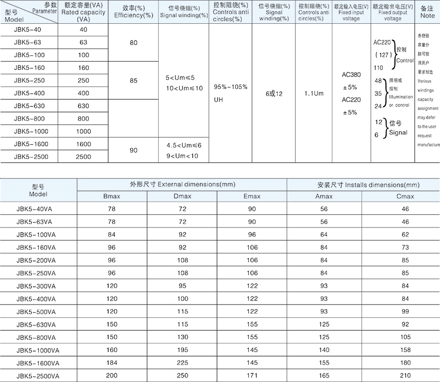 JBK5系列機(jī)床控制變壓器是我公司引進(jìn)德國90年代中期最新型變壓器系列,在國內(nèi)JBK3 系列機(jī)床控制變壓器基礎(chǔ)上,經(jīng)過多年來進(jìn)一步吸收國外同類產(chǎn)品,并優(yōu)選國外先進(jìn)方法的接 線端子結(jié)構(gòu)、將端子與骨架合在一起,使防護(hù)等級提高到lP2LX,防止偶然觸及電路。采用國 內(nèi)lT冷壓接線端子。接線方式可以使接線密集程度提高。 變壓器的硅鋼片與硅鋼片之間聯(lián)接、硅鋼片與底板聯(lián)接均采用氬弧焊焊接工藝,形成一個(gè) 整體,簡捷明了。尤其是底板一次性成型,安裝尺寸較JBK3系列更為準(zhǔn)確,而采用優(yōu)質(zhì)防蝕 合金材料,大大增高了接地性能的可靠性,全面提高了產(chǎn)品質(zhì)量,該產(chǎn)品符合VDE0550、IEC 204-1、EC439、JB5555、GB5226等有關(guān)國際、國家標(biāo)準(zhǔn),并榮獲歐共體“CE”認(rèn)證,美 國“UL”認(rèn)證??膳c國外產(chǎn)品互換使用。